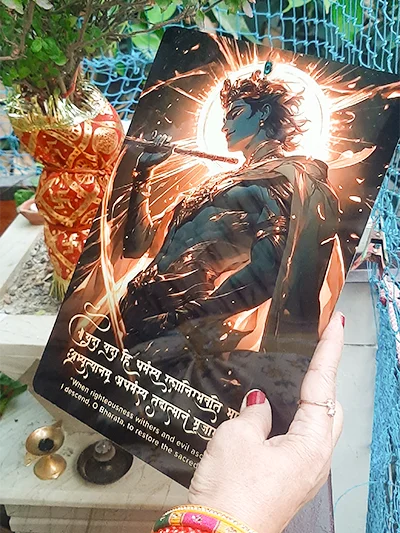 mujhe acha laga ye krishan ji ka poster. kafi shiny hai. high quality bhi